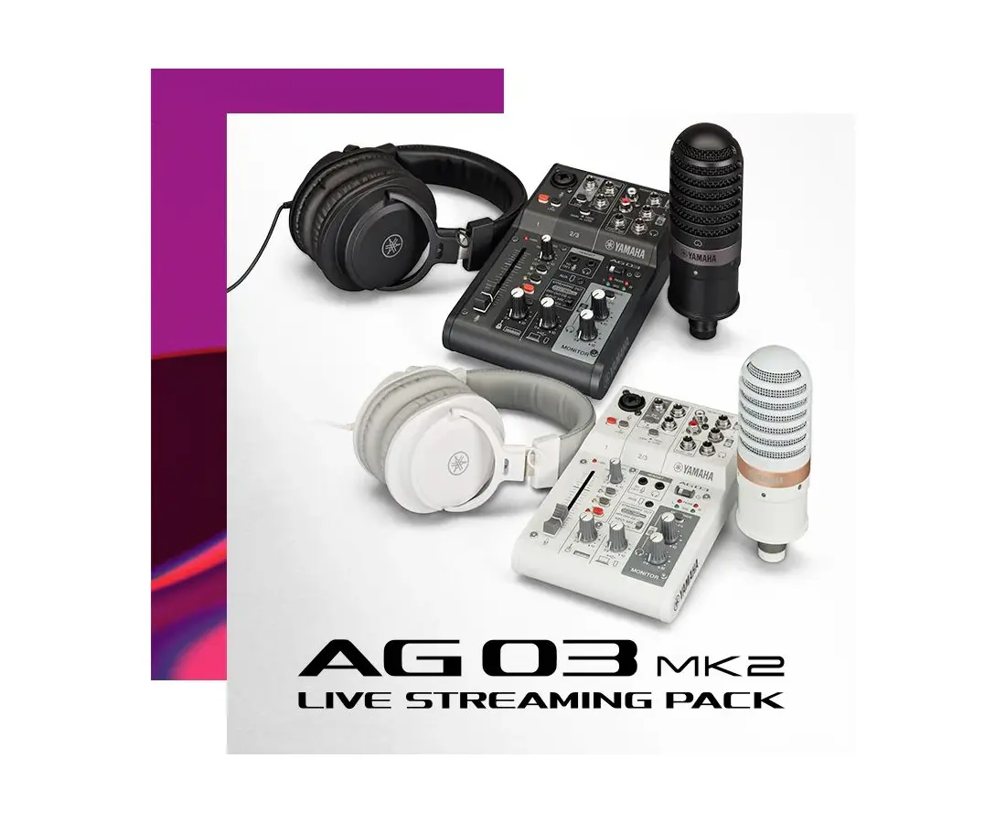 AG03MK2 White LSPK комплексный пакет AG03MK2, который включает в себя все продукты, необходимые для того, чтобы сразу же приступить к работе с прямой трансляцией: AG03MK2 - 3-канальный микшер для прямой трансляции с аудиоинтерфейсом USB, YCM01- конденсаторный микрофон студийного качества (XLR, кардиоидный тип), YH-MT1- наушники студийного качества, микрофонный кабель XLR ( 3 м, черный)