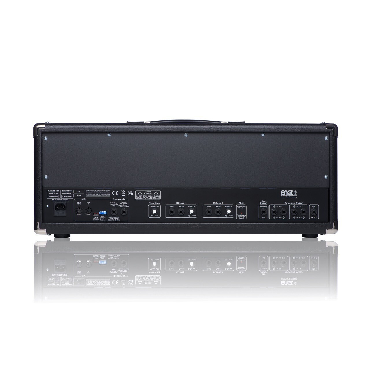 - Controls (Rear): Noise Gate threshold level, FX Loop I Balance, FX Loop II Balance,