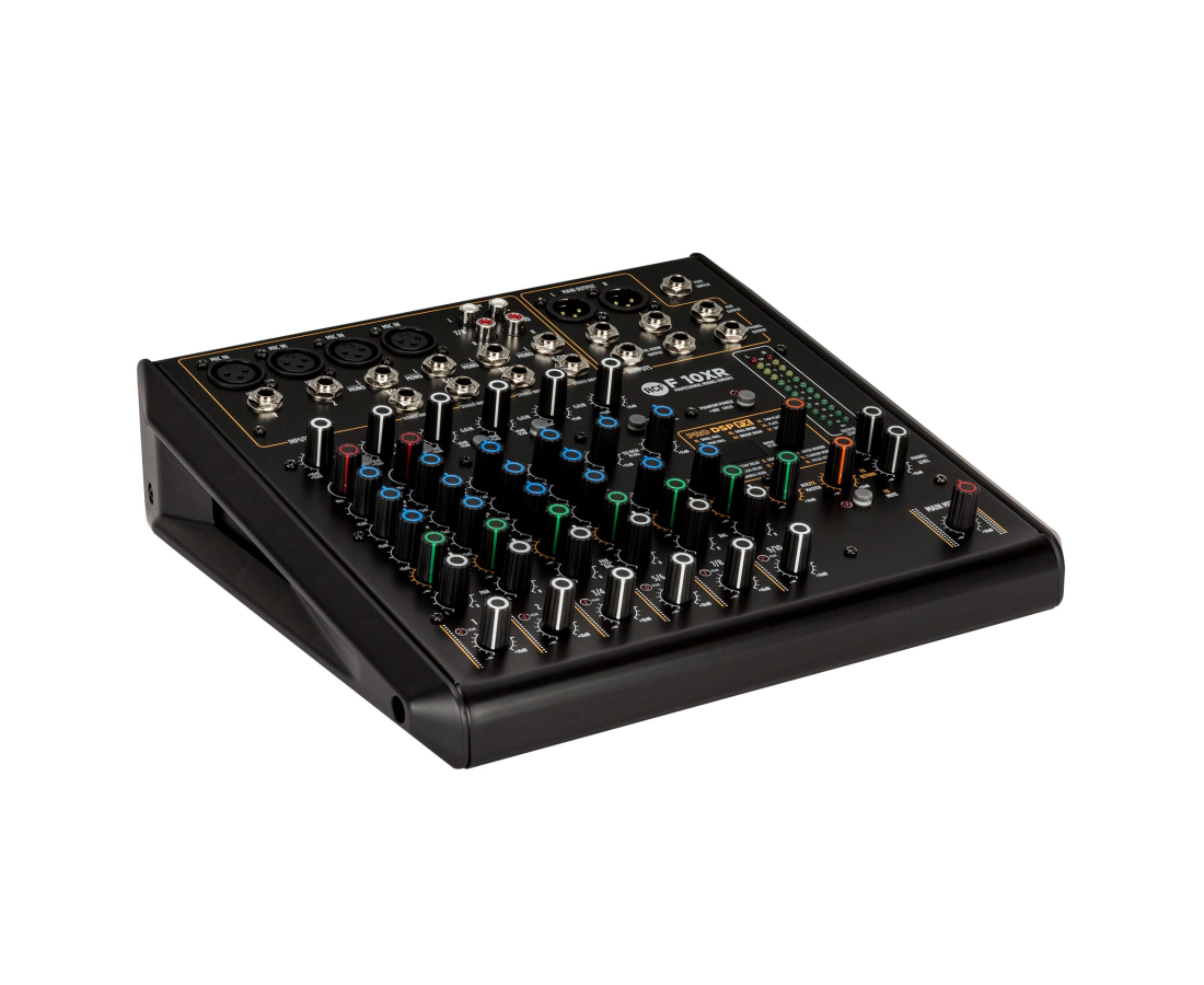 Аналоговая микшерная консоль; 10 каналов; 3-х полосный эквалайзер на каждый канал; 4 XLR/Jack моно входа; 2 Jack/RCA стерео линейных входа; XLR/Jack стерео выход; Jack стерео control room выход; Выход для наушников; Footswitch in; PRO DSP FX с 16 предустановками; Стереозапись и воспроизведение через порт USB; 2 одинарных компрессора; 1 aux / FX; Прочное металлическое шасси; Внешний универсальный источник питания