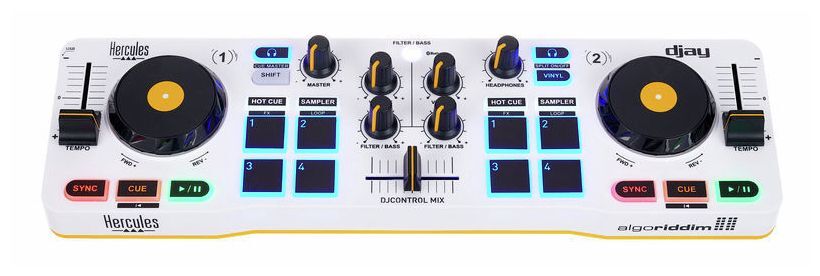 Hercules представляет самый первый DJ-контроллер, разработанный для смартфонов, который помогает микшировать и скретчить. Портативный DJCONTROL MIX помещается в рюкзак и его можно взять c собой куда угодно. Дайте волю своему творчеству и станьте ди-джеем на небольшой домашней вечеринке. DJCONTROL MIX питается от внешнего аккумулятора или источника питания USB и подключается к бесплатному приложению Algoriddim Djay при помощи Bluetooth соединения.