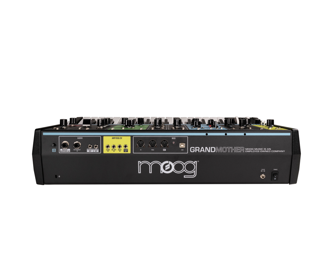 Moog Grandmother — полу-модульный аналоговый синтезатор с 32-клавишной клавиатурой Fatar и полностью аналоговым звуковым трактом; оснащён двумя осцилляторами с Hard Sync, фильтром Ladder (10 Гц – 20 кГц), ADSR-огибающей, LFO с аудиодиапазоном, пружинным ревербератором, секвенсором (до 3 последовательностей по 256 нот), арпеджиатором, 41 патч-пойнтом (21 вход, 16 выходов), USB и MIDI I/O, внешним аудиовходом 1/4", возможностью работы с DFAM, Mother-32 и Eurorack. Размер: 584 × 362 × 140 мм; вес: 8,2 кг.
