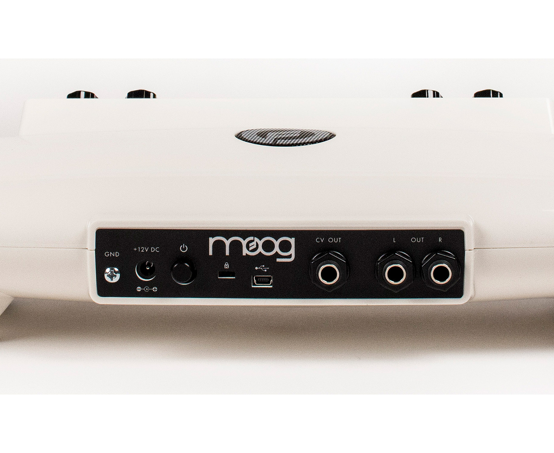 Moog Theremini; терменвокс с автонастройкой; 32 пресета; wavetable-движок на базе Animoog; встроенный тюнер и стерео-дилей; CV-выход 0–5 В / 0–10 В; USB MIDI; наушники и линейный аудиовыход; встроенный динамик; питание 12 В; габариты: 57,8×16,5×38 см; вес: 1,36 кг.
