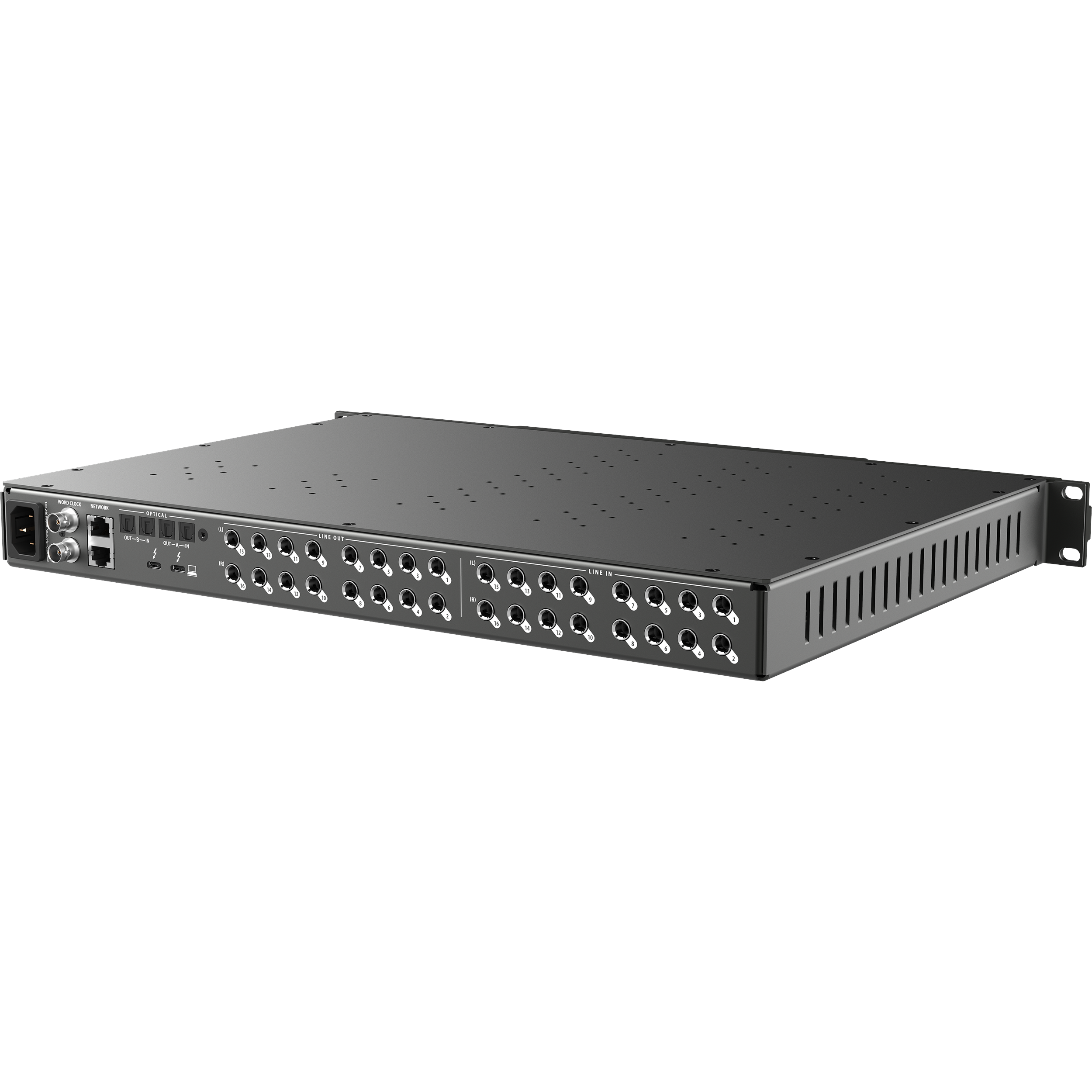 - Аналоговое I/O: 16 x TRS линейных входов и 16 x TRS линейных выходов (балансные), плюс независимый стереовыход на наушники.