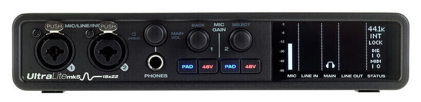 • Микрофонные / линейные / гитарные входы: 2 x XLR / TRS "комбинированных" гнезда Сопротивление 1 МОм на входах line / instr.