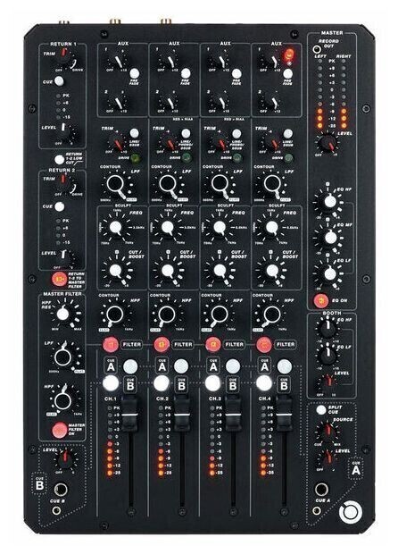 Надежные фейдеры 60 мм с двумя направляющими для плавной работы; Полупараметрический эквалайзер и контурные фильтры на каждом канале для точной настройки;