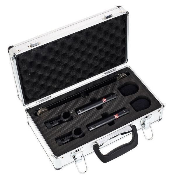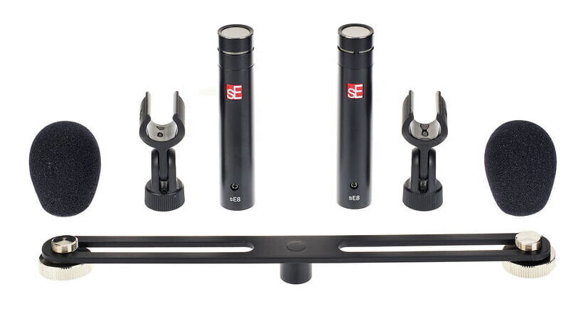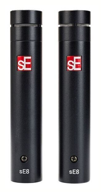 - Комплектация: 2 x микрофона sE8, 2 x микрофонных зажима (с резьбовыми адаптерами), 2 х ветрозащиты, стерео штанга, прочный металлический кейс