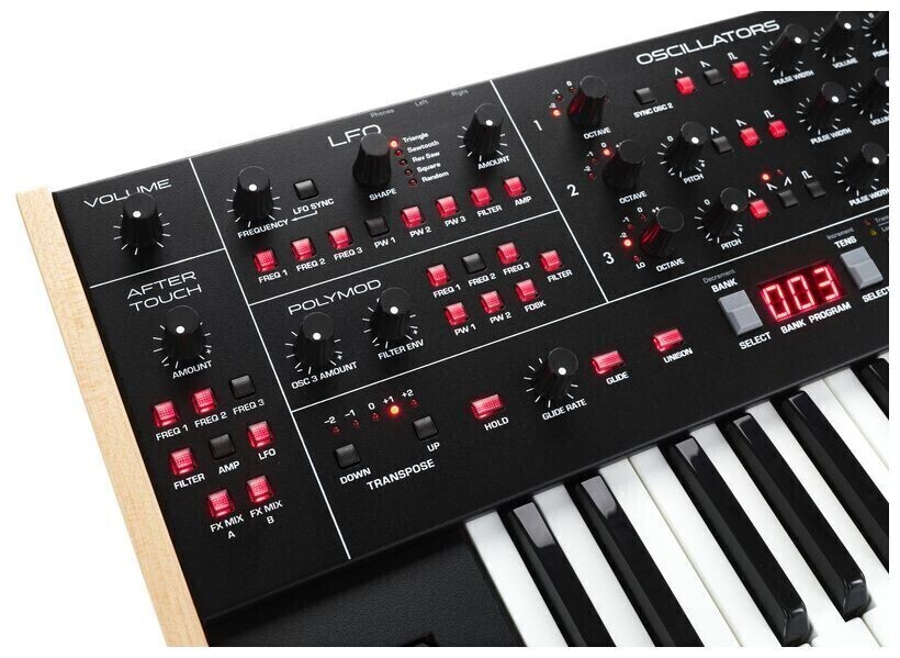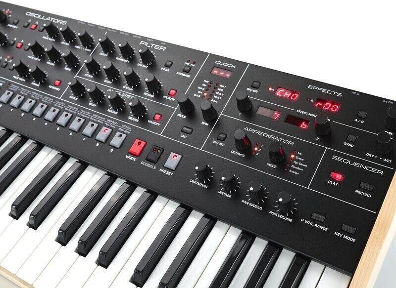 - Унисонный (монофонический) режим с настраиваемым количеством голосов, от одного до всех шести голосов, памятью аккордов и режимами тональности