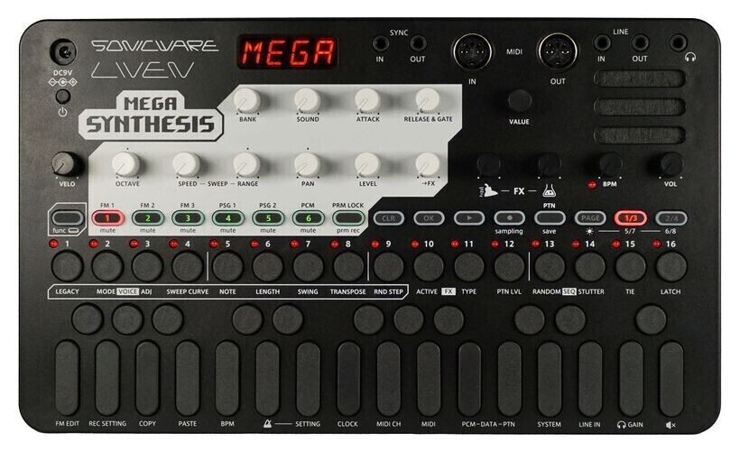 - Банк звуков и паттернов Юзо Косиро, известного композитора, из «Ys», «The Streets of Rage» и «Etrian Odyssey».