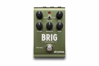 Strymon Brig — компактная стерео педаль задержки с цифровым моделированием dBucket, воссоздающая характер аналоговых BBD-эхо с тёплыми, слегка зернистыми повторами и выразительной динамикой. Три уникальных тембра задержки, удобное управление, tap tempo без артефактов, экспрессия и MIDI.