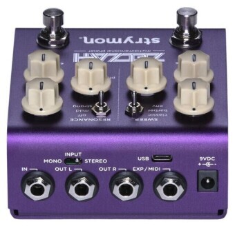 Двойной фэйзер Strymon Zelzah Stereo Phaser представляет собой два независимых эффекта стерео-фэйзера, помещённых в единый корпус Внутренняя топономика этого гитарного эффекта дает возможность коммутировать обе секции обработки как последовательно, так и параллельно, или даже раздельно, посылая сигнал с выхода каждого из них в свой канал, левый или правый, позволяя добиться невероятных панорамных эффектов Стереовходы и стереовыходы педали позволяют использовать устройство не только с гитарой, но и с другими инструментами, например, клавишными, поэтому это не совсем «гитарный эффект», хоть и условно мы относим эту педаль Strymon к данной категории Каждая половина Zelzah Phaser работает по своей собственной схеме, и отличается собственным набором регулируемых параметров Для удобства, элементы управления разнесены каждые на своей половине Если в вашем педалборде было два фэйзера, то теперь вы смело можете заменить их на один! Левая половина педали эффектов – четырёхступенчатый фейзер, с тремя переключаемыми режимами развёртки, обозначенными Classic, Barber и Envelope Первый – классический фейзер с синусоидной формой волны Второй – так называемый барбер-пол, по аналогии с характерными лампами, являющимися за рубежом отличительным знаком парикмахерских, или, как сейчас принято их называть – барбершопов Или же движение волны можно сравнить с более привычным винтом Архимеда (он же шнек) в мясорубках В этом режиме новый цикл волны фейзера начинается, не дожидаясь завершения прежнего Третий же режим работает по принципу схожему с автовау, и звучит практически также Глубина и скорость модуляции чувствительны к динамике звукоизвлечения Регулируется работа эффекта всего тремя ручками, чего более чем достаточно Ничего лишнего Функция ручки Mix остаётся неизменной, независимо от режима Это баланс между исходным сигналом и обработанным Depth в режимах Classic и Barber управляет глубиной модуляции, а в третьем – Envelope, регулирует чувствительность к силе удара по струнам Speed – в первых двух режимах – скорость, а в третьем – диапазон: то, на какую глубину отклоняется обработанный сигнал от состояния покоя, стремясь в него вернуться Умелое манипулирование настройками гитарной педали Strymon Zelzah, позволяет от эффекта фейзера добиться не только авто-вау, но и других эффектов. Взято с сайта: dmtrpedals.ru. Например, можно получить пилообразное тремоло, выкрутив Mix в право до упора при небольшом значении Deep А если ещё к этим настройкам добавить выставленную на максимум ручку Speed, получится эффект кольцевой модуляции Можно найти и другие интересные сочетания, вызывающие новые эффекты, не поленитесь зайти в магазин, и попробовать различные варианты своими руками Все настройки регуляторов педаль Zelzah позволяет сохранять в пользовательские пресеты Правая половина примочки – шестиступенчатый фейзер, работает несколько по-другому Здесь трёхпозиционник переключает не режимы развёртки, а добавляет обратную связь, мягко или жёстко Назначение ручек Speed и Deep то же, что и в левой секции, то есть скорость и глубина модуляции, а вместо ручки Mix тут интерактивный регулятор Voiсe, управляющий характером звучания эффекта, и способный превратить звучание фэйзера в подобное флэнджеру или хорусу Кроме того, для регуляторов существуют скрытые параметры, вызов которых осуществляется переводом устр