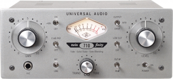 710 Twin-Finity™ завоевавшей множество престижных наград — это необычный предусилитель от Universal Audio, сочетающий в себе классическое, теплое звучание лампы и колючих транзиентов транзистора в компактном 2U корпусе шириной в половину рэка. 710 специально спроектирован для того чтобы расширить тембр, а также доставить тональную универсальность, отсутствующую у многих предусилителей. Выбор между 100% ламповым и 100% транзисторным окрасом предлагает богатый спектр неповторимых тембров предусиления и даёт возможность создать собственное неповторимое звучание. На сегодняшний день на рынке профессиональной аппаратуры для звукозаписи существует огромный выбор между множеством ламповых или транзисторных предусилителей, но 710 – единственный, сочетающий в себе достоинства из обоих миров — как все что находится посередине – все в одном корпусе и в пределах досягаемости бюджета любой серьезный студии.