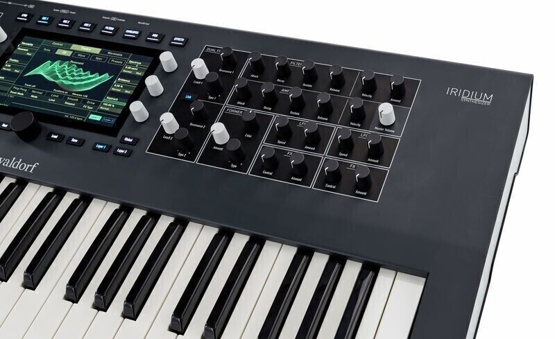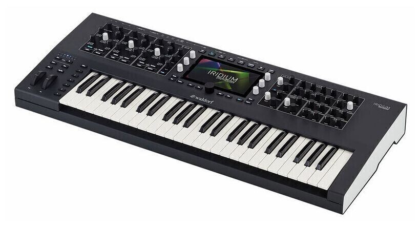Waldorf Iridium Keyboard — цифровый синтезатор Iridium с 49 полувзвешенными клавишами Fatar TP/8SK с поддержкой Aftertouch. Три осциллятора способны работать в пяти режимах: таблично-волновой, виртуально-аналоговый, семплирование/гранулярное семплирование, резонатор и преобразование одного осциллятора в несколько сабосцилляторов, связанных через частотную модуляцию.
