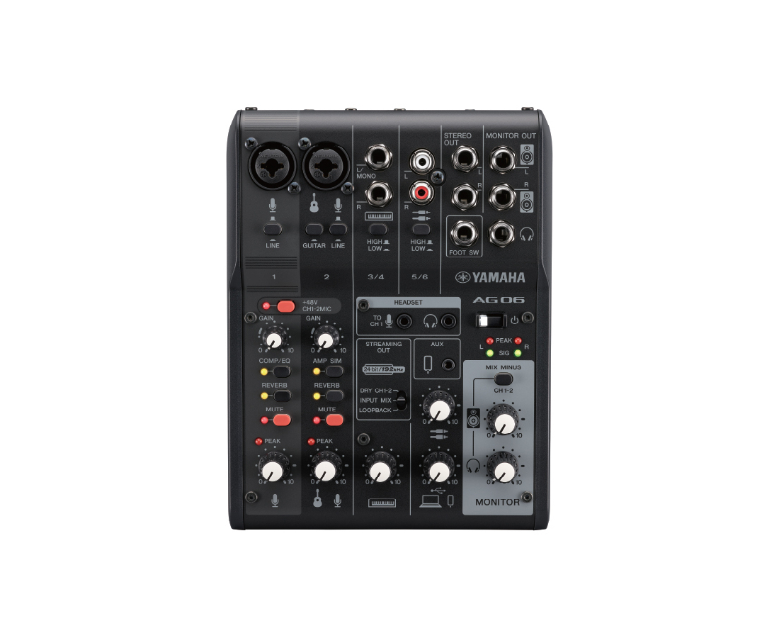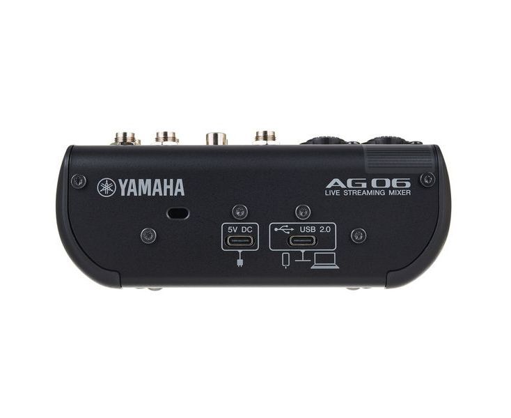6-канальный микшер для потокового вещания с аудиоинтерфейсом USB Yamaha AG06MK2; Два конденсаторных микрофона могут использоваться одновременно; Адаптивная функция LOOPBACK, идеально подходящая для живой записи или вебкастинга; 2-дорожечная аудиозапись и воспроизведение высокого разрешения (24 бит/192 кГц); Средства обработки сигнала 1-TOUCH COMP/EQ, REVERB; Фантомное питание +48 В и кнопка Mute на Mic входах; Вход Hi-Z для гитар; 4-контактный мини-вход/выход (TRRS) для поддержки более широкого спектра потоковых приложений; ПО AG Controller (Windows/Mac/iOS) для точного управления параметрами; В комплекте ПО Cubase Al, WaveLab Cast, Cubasis LE и Rec'n'Share; Размеры: 152х63х201 мм; Вес: 0.9 кг