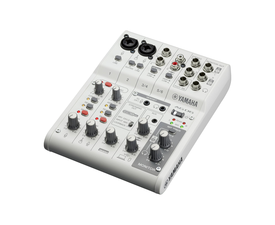 6-канальный микшер для потокового вещания с аудиоинтерфейсом USB Yamaha AG06MK2; Два конденсаторных микрофона могут использоваться одновременно; Адаптивная функция LOOPBACK, идеально подходящая для живой записи или вебкастинга; 2-дорожечная аудиозапись и воспроизведение высокого разрешения (24 бит/192 кГц); Средства обработки сигнала 1-TOUCH COMP/EQ, REVERB; Фантомное питание +48 В и кнопка Mute на Mic входах; Вход Hi-Z для гитар; 4-контактный мини-вход/выход (TRRS) для поддержки более широкого спектра потоковых приложений; ПО AG Controller (Windows/Mac/iOS) для точного управления параметрами; В комплекте ПО Cubase Al, WaveLab Cast, Cubasis LE и Rec'n'Share; Размеры: 152х63х201 мм; Вес: 0.9 кг